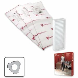 Paquet de 3 sacs électrostatiques courts pour aspirateurs centraux Cyclo Vac à sac. Ces sacs jetables à 3 dents et chargés électrostatiquement emprisonnent la poussière et vous assurent une puissance d’aspiration constante et maximale, peu importe le volume de poussière à l’intérieur.