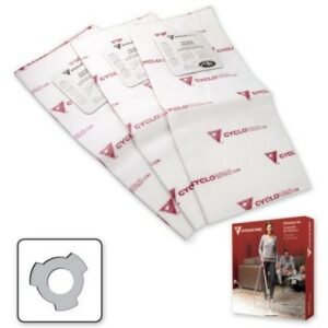 Ensemble de sacs et filtre rond pour aspirateurs centraux Cyclo Vac. Cet ensemble comprend 3 sacs filtres électrostatiques à 3 dents et 1 CyclofiltreTM rond.